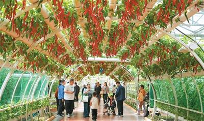 4月20日,第二十七届中国(寿光)国际蔬菜科技博览会在山东省寿光市蔬菜高科技示范园开幕。本届博览会以“绿色·科技·未来”为主题,集中展示国内外优质蔬菜品种、种植新模式与新技术。博览会将持续至5月30日。图为人们在博览会上参观。
