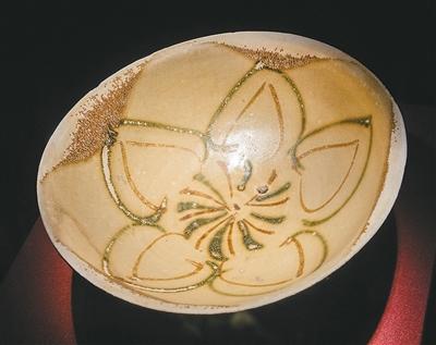唐长沙窑青釉褐绿彩莲花纹碗。