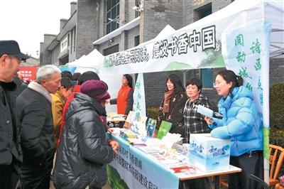 湖北省宜昌市夷陵区“开往春天的图书车”春季主题阅读活动近日在杨家湾村启动。图为村民参加“书香邓村 茶香阅色”读书活动。