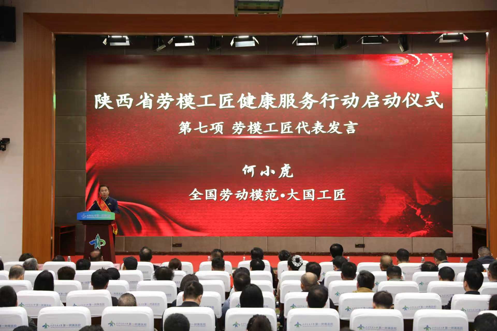 本报讯(记者 周生来)4月21日,由陕西省人力资源和社会保障厅、省总工会主办,省劳模工匠协会、西安交通大学第一附属医院承办的陕西省劳模工匠健康服务行动启动仪式在西安举行。省总工会党组书记、常务副主席王军讲话并宣布行动启动。西安交通大学党委常委、常务副校长别朝红,延安大学党委副书记、校长奚家米致辞。省人社厅党组成员、副厅长唐善武出席并讲话。省总工会党组成员、经费审查委员会主任樊树森主持。