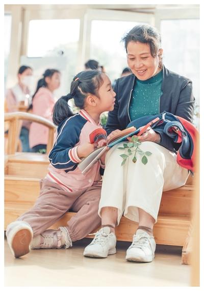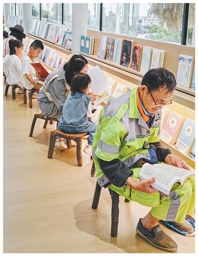 江西省南昌高新区晓美书馆内,家长和孩子在阅读。