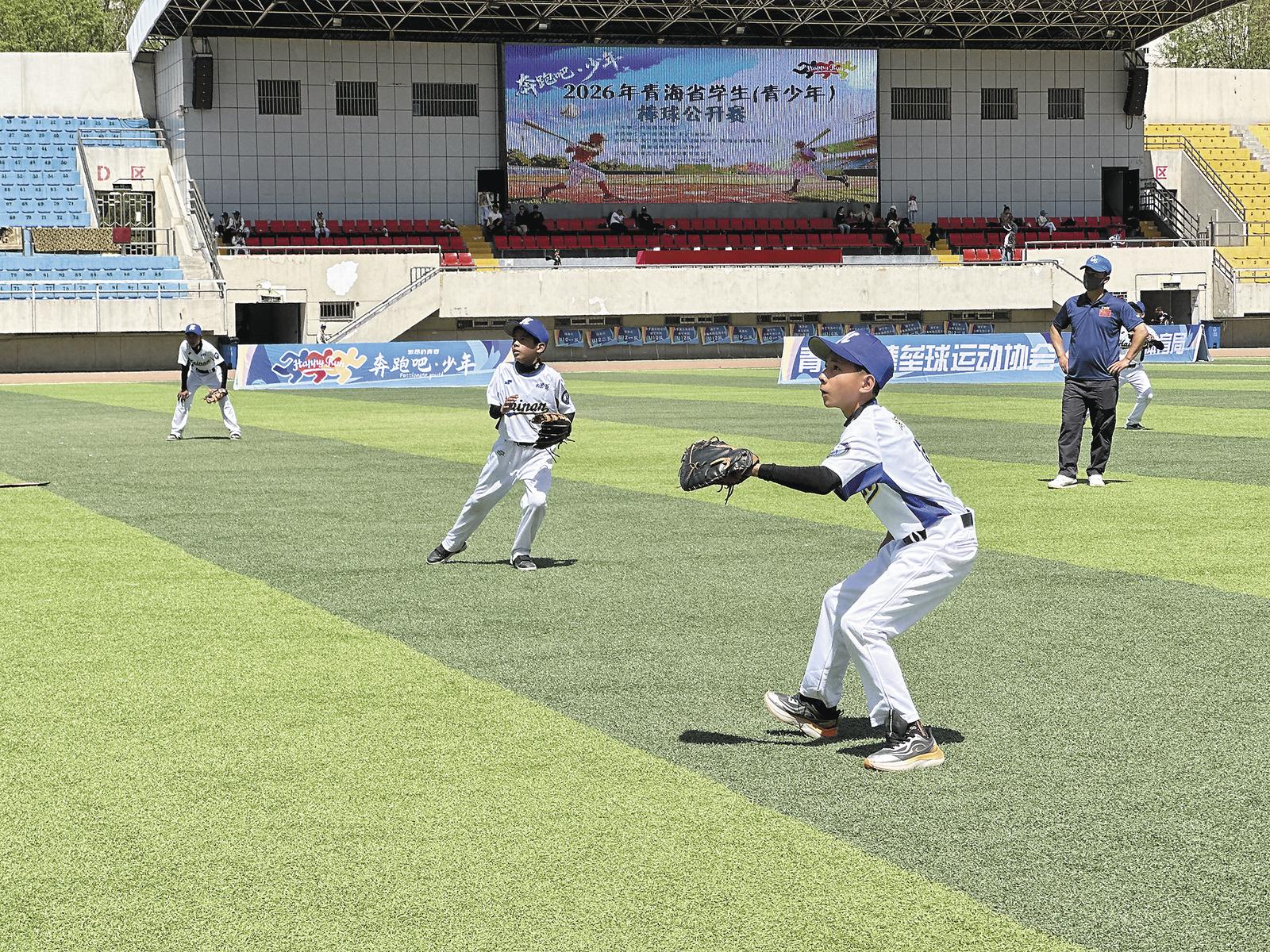 4月25日,2026年青海省学生(青少年)棒球公开赛在西宁市体育场拉开帷幕,来自全省各地的17支球队、290名球员及教练员分为U8、U10、U12 三个组别,展开为期两天的29场精彩对决。