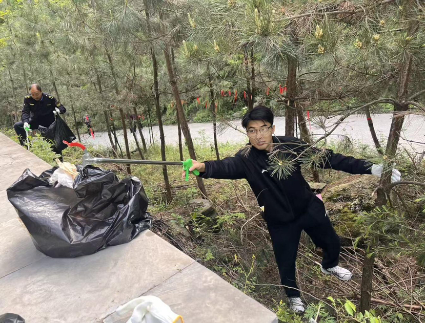 宣传引导工作同步开展的同时,清山净峪行动全面展开。全体参与人员分成多个小组,沿着预设登山路线、山间步道及休息站点,全面开展垃圾捡拾工作。大家手持垃圾袋、垃圾夹,仔细清理步道两侧、草丛中、岩石缝里的塑料瓶、食品包装袋、纸屑、果皮等各类垃圾,不放过任何一个卫生死角。从进山入口到山间道路,从观景平台到休息区域,每一处区域都留下了大家认真清理的身影,用汗水守护秦岭的绿水青山。