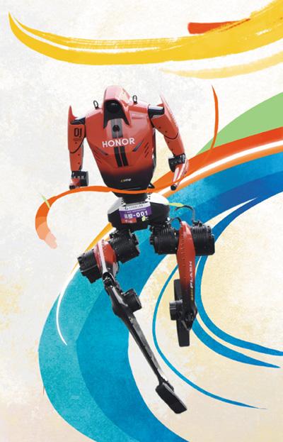 4月19日,参加2026北京亦庄人形机器人半程马拉松的自主人形机器人选手“闪电”在比赛中。