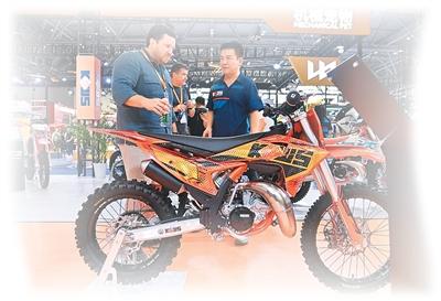 在重庆举行的2025年第二十三届中国国际摩托车博览会上,外国客商正在观展。