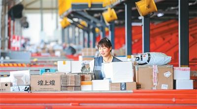江苏省宿迁市宿城区兰博物流园分拣中心,工作人员在分拣快递包裹,保障电商订单及时送达。