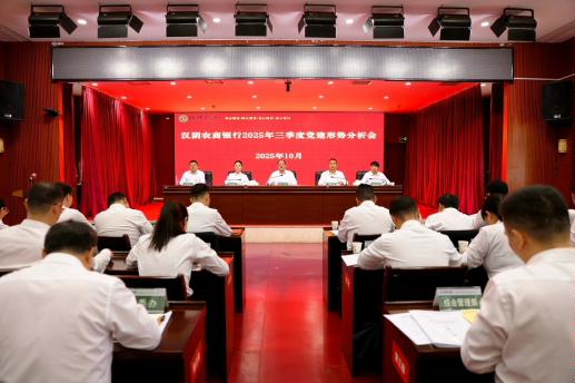 10月11日,陕西农信汉阴农商银行党委召开2025年三季度党建形势分析会,该行党委班子成员、各党支部书记、支部委员、党务专干和机关全体党员参加会议。