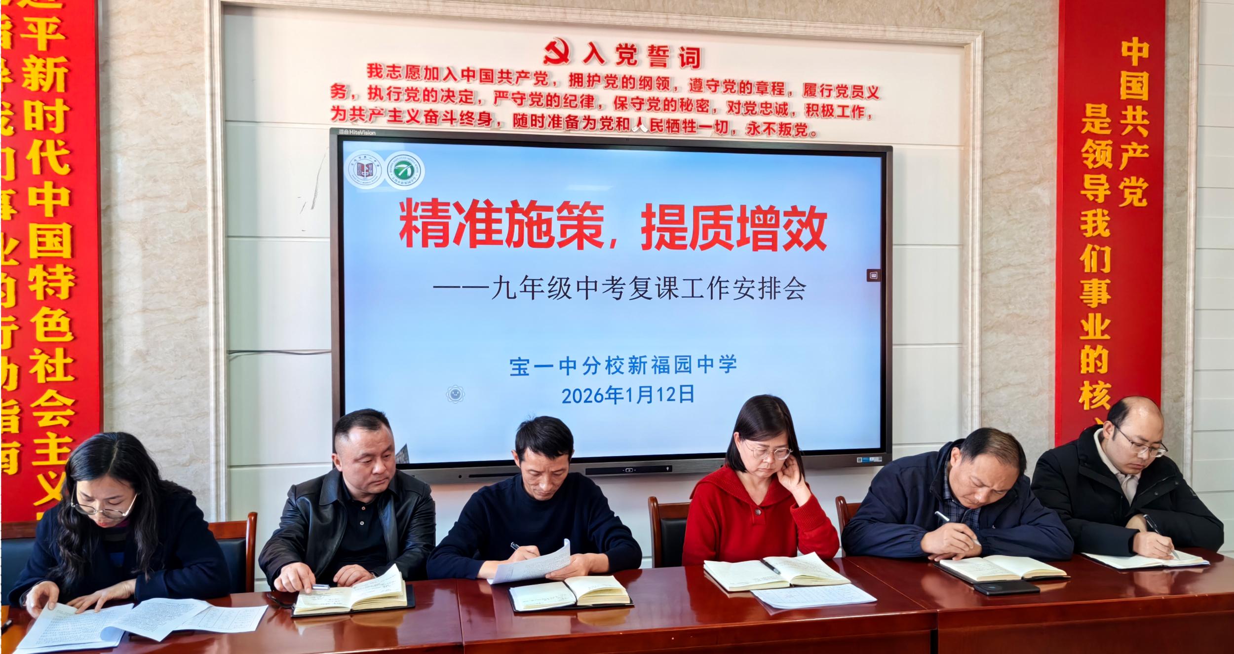 为精准把握中考方向,凝聚备考合力,1月12日下午,宝鸡市第一中学分校新福园中学召开2026年中考复课备考工作会。学校全体班子成员及初三年级教师齐聚一堂,共同擘画蓝图,吹响冲刺号角。