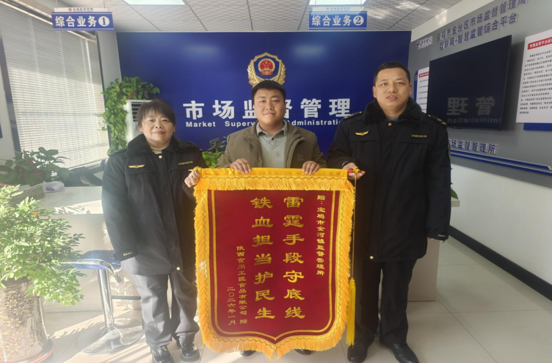 1月12日,宝鸡市金台区市场监督管理局金河市场监督管理所收到辖区企业送来一面印有“雷霆手段守底线 铁血担当护民生”字样的锦旗,以此感谢执法人员推行“首违不罚”制度,给予企业纠错机会、助力企业健康发展的做法。