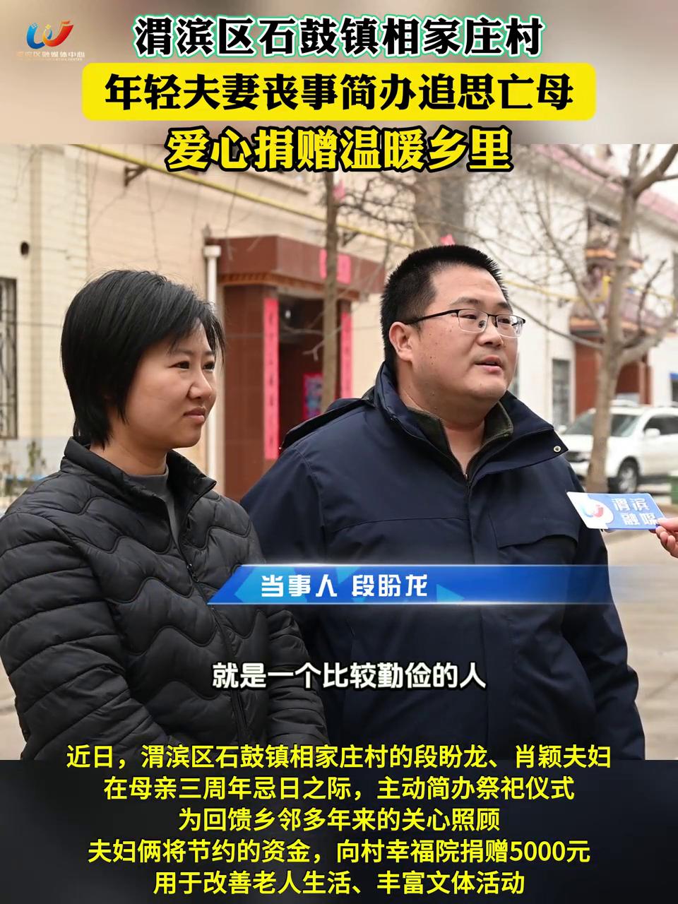 宝鸡市渭滨区相家庄村年轻夫妻简办丧事,给村幸福院捐赠5000元