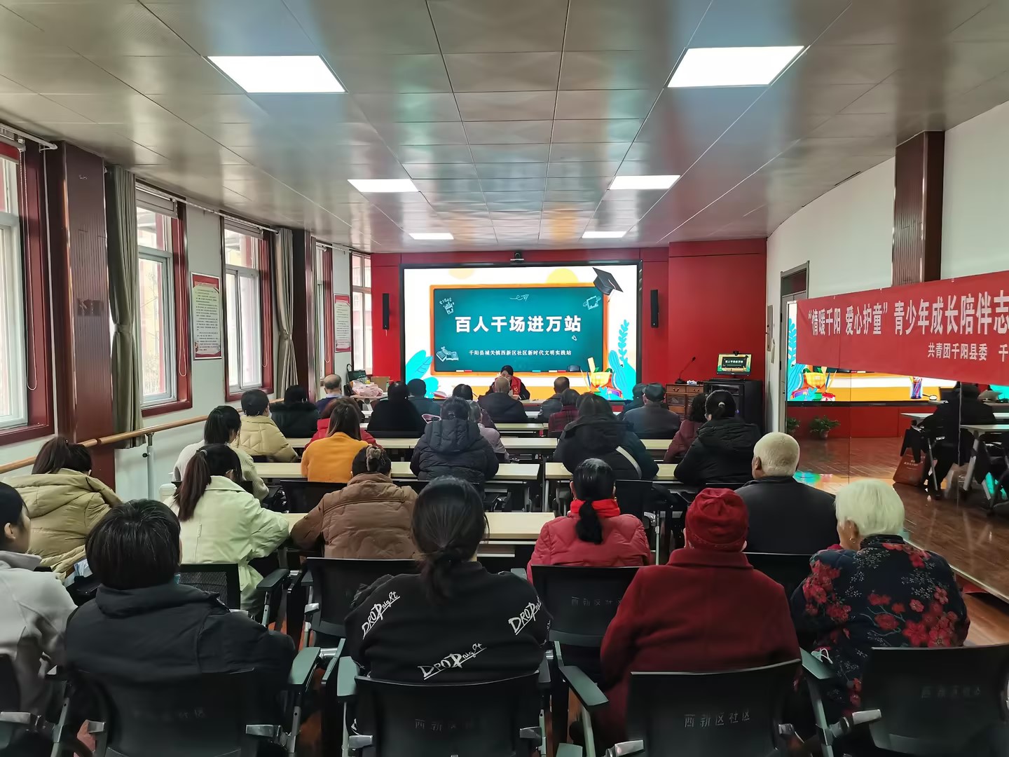近日,千阳县城关镇西新区社区依托新时代文明实践站主阵地,扎实开展“百人千场进万站”文明实践活动,组织社区工作人员深入解读党的二十届四中全会精神和惠民政策,吸引了辖区众多老年和青年居民参与。
