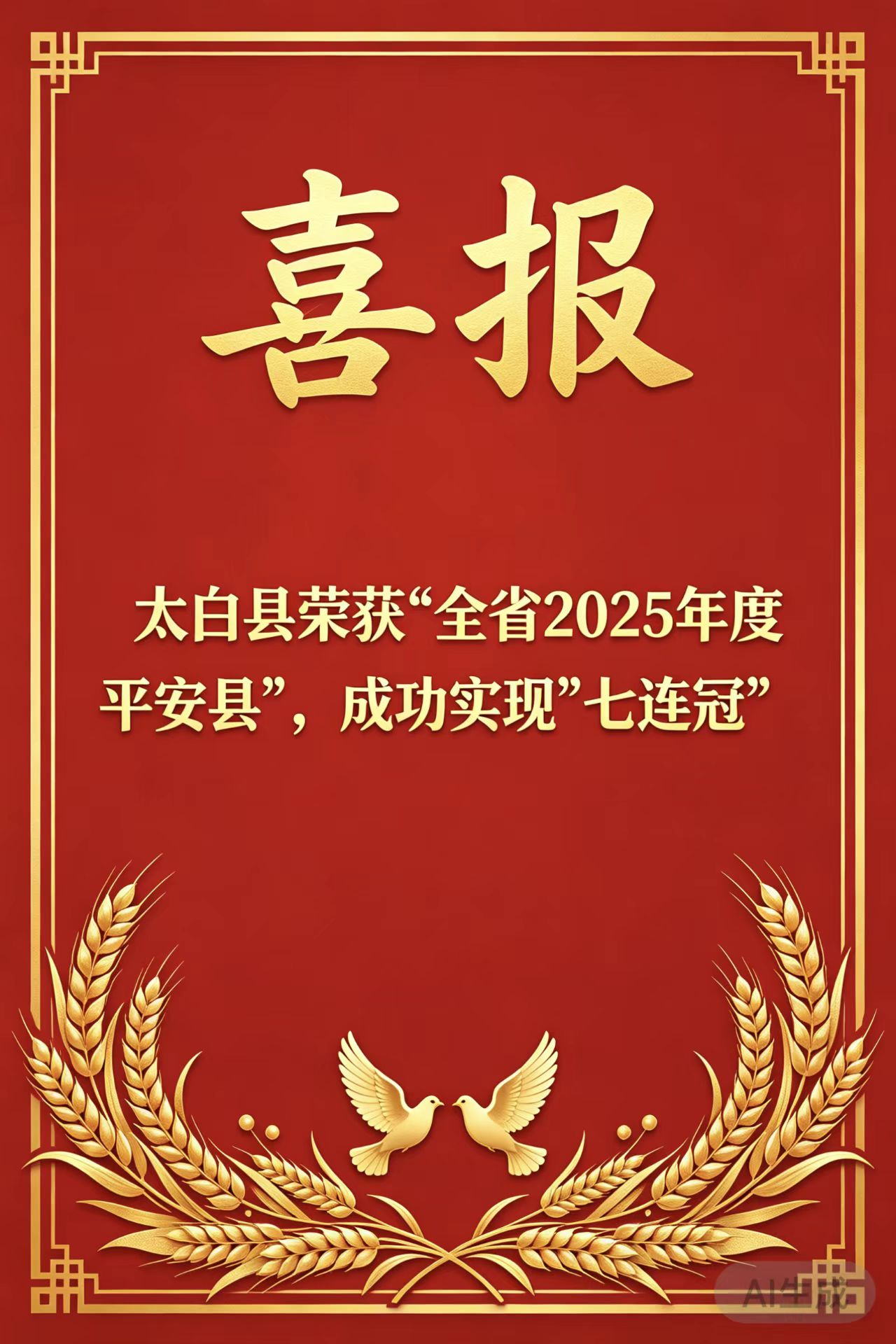 喜报!太白县被省委平安陕西建设领导小组授予“平安县”荣誉称号