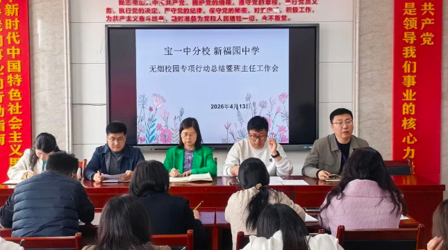 4月13日下午,宝鸡市第一中学分校宝鸡市新福园中学召开无烟校园建设总结暨2026年春季班主任工作会议。