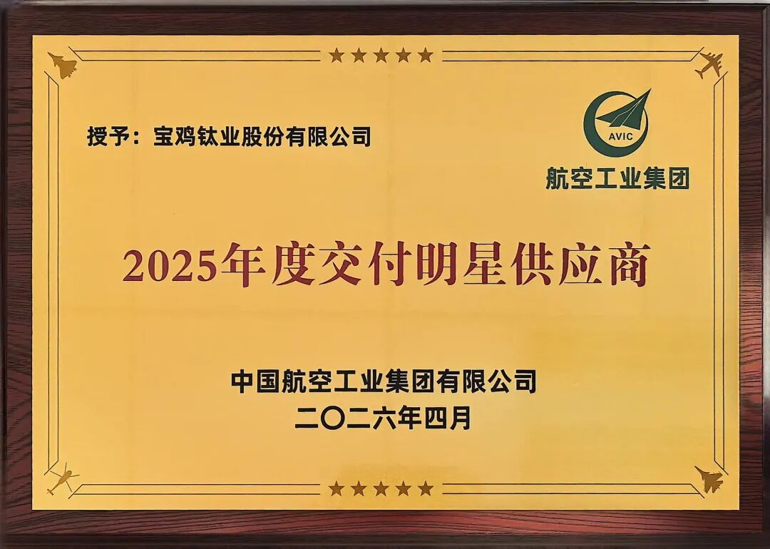 近日,中国航空工业集团2026年供应商大会召开。宝钛股份作为核心原材料供应商受邀参会,凭借在交付保障、品质管控、协同响应等方面的优异表现,荣获“2025年度交付明星供应商”称号。