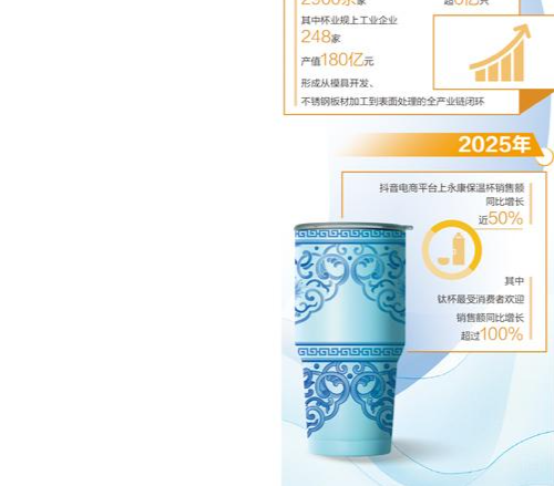 从海外社交媒体“中式生活清单”刷屏,到保温杯等日常好物风靡全球,中国制造从工厂车间走向全球餐桌,从实用器具升级为健康生活符号。中国贡献了全球超过60%的保温杯产量,每年产量约8亿只。