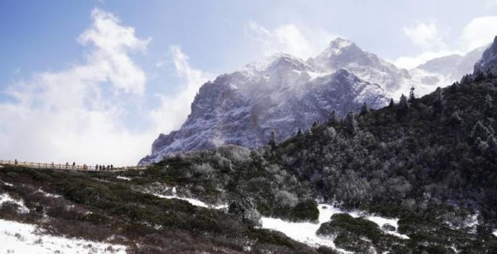 2026年3月1日,游客在甘肃省陇南市宕昌县官鹅沟景区雷古山欣赏雪景。当日,甘肃省陇南市宕昌县喜降瑞雪,春雪将官鹅沟景区装扮得银装素裹。