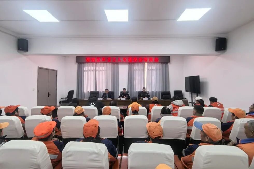 12月17日,陕西省咸阳市渭城区城管执法局联合区交警大队,组织开展环卫工人交通安全专题培训会,辖区40名环卫工人代表参加。