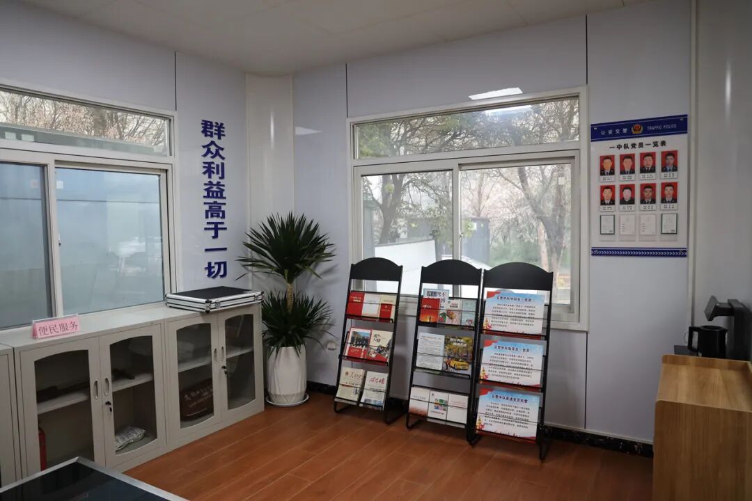河堤路地处西咸新区与咸阳城区重要交通衔接区域,区位特殊、车流密集,日常交通管理与服务保障任务繁重。同时,渭柳湿地公园及周边党建活动阵地集中,群众出行需求多样。为进一步贴近群众、服务基层,切实把为民服务落到实处,2025年12月,陕西省咸阳市渭城交警大队在河堤路高标准建成公安交警警务站,成为全市功能完善、配套齐全、布局规范的一线交管服务阵地。该警务站集交通管理、党员活动、便民服务、宣传教育于一体,既是面向群众的服务窗口,也是凝聚警心的红色阵地,更是联通警民的坚实纽带。