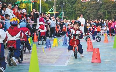 近日,江西省抚州市一幼儿园开展“红歌嘹亮运动飞扬”亲子活动,让孩子们在形式多样的趣味游戏和体育活动中厚植爱国情感、强健体魄,快乐成长。