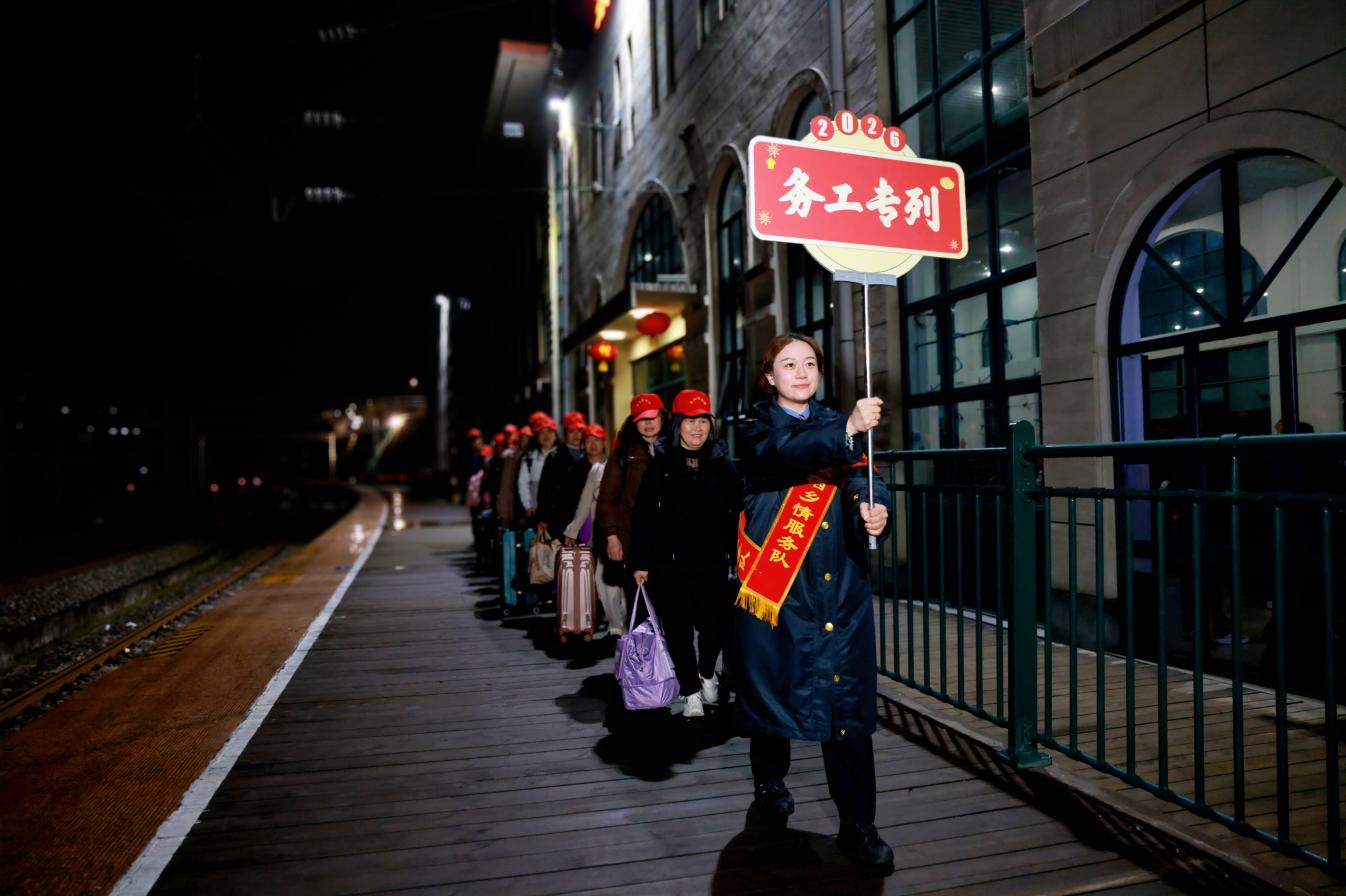 2月24日0时30分,满载务工人员的K4258次列车从宣汉站准点驶出,一路向东奔赴上海,标志着2026年秦巴山区首趟“点对点”务工团体专列正式开行。这也是中国铁路西安局集团有限公司(以下简称西安铁路局)连续28年在秦巴山区开行务工专列,已累计服务近163万旅客返岗复工,为新一年务工人员返岗复工保驾护航。