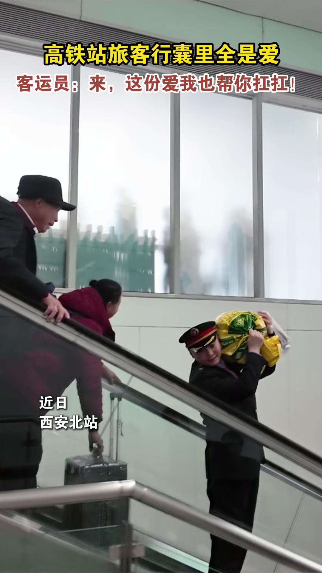行囊里,塞满了家乡特产与牵挂的味道。西安北站客运员吴瑜主动上前,接过这份沉甸甸的爱意,一路贴心护送,将老人平安送至车厢。