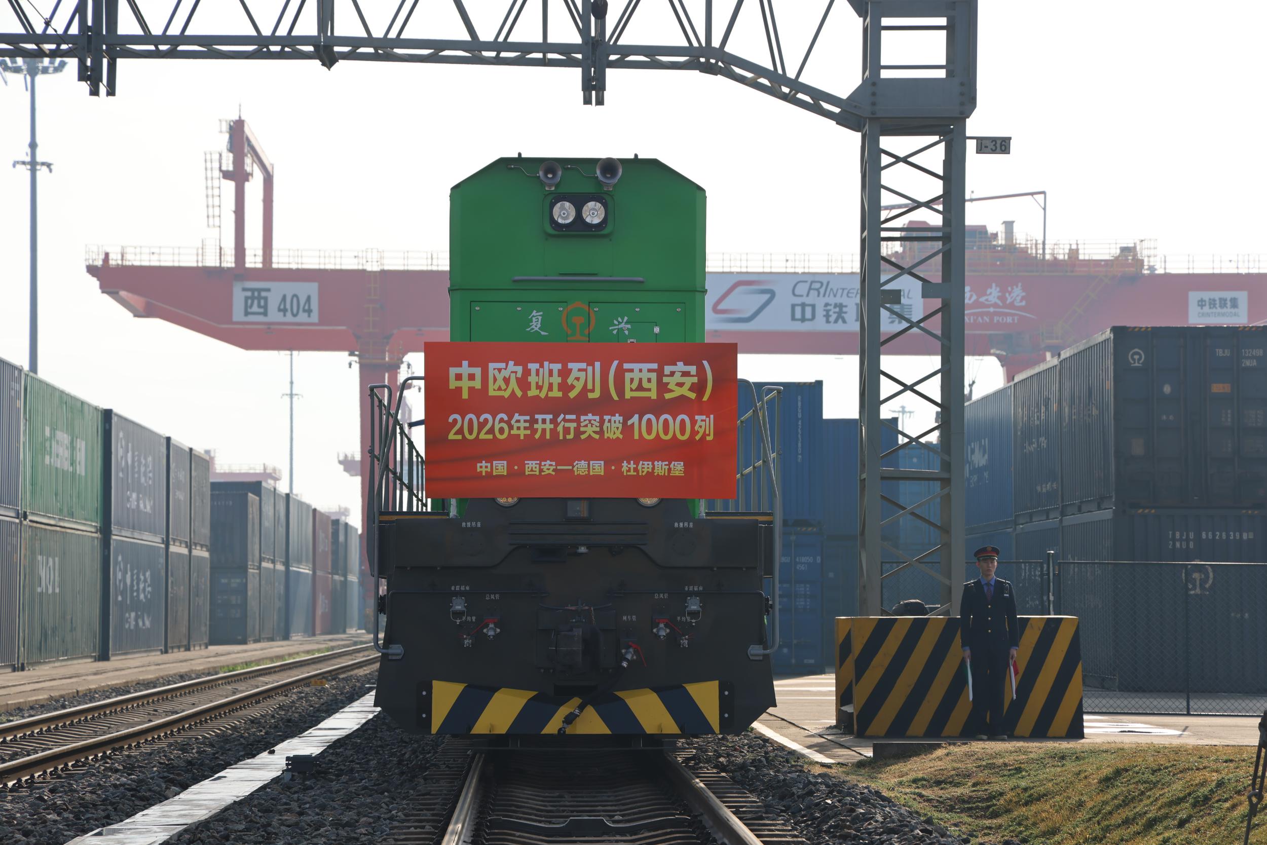 3月2日,随着嘹亮的汽笛声,满载着汽车配件、特色轻工产品、新能源材料等货物的X8151次中欧班列从西安国际港站缓缓驶出,一路向西开往德国杜伊斯堡,标志着中欧班列(西安)2026年开行突破1000列,较2025年提前19天突破千列大关,开行量同比增长超30%,以亮眼成绩实现首季运输“开门红”。