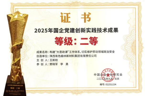 榆林新材料集团党建成果获评2025年国企党建创新实践技术成果第二等级