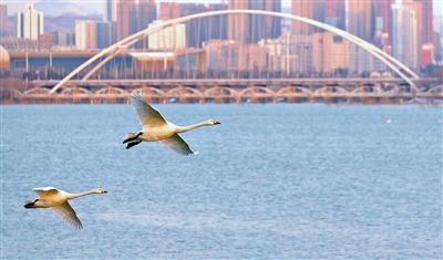 眼下,正值黄河湿地天鹅数量的峰值期,来自全国各地的游客到黄河湿地观赏天鹅,体验冬日别样风情。
