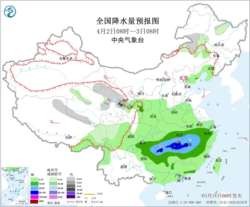今明两天(3月30日至31日),南方仍有大范围降雨,雨带会逐渐东移南压,并伴有强对流天气。