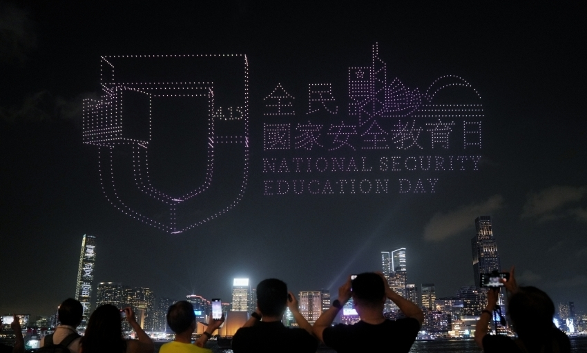 “全民国家安全教育日” 2026架无人机点亮香港维港夜空