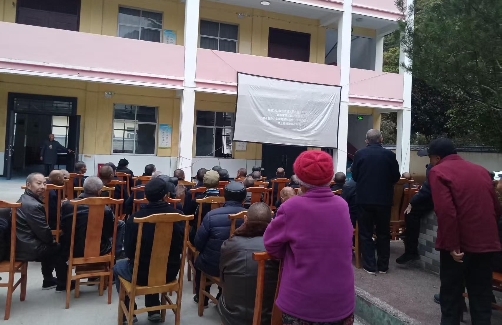 11月4日,镇安县王家坪社区中心敬老院内欢声笑语不断,县电影院公益放映队精心挑选的《移风易俗树新风》《战火黎明》等影片正在轮番上映。