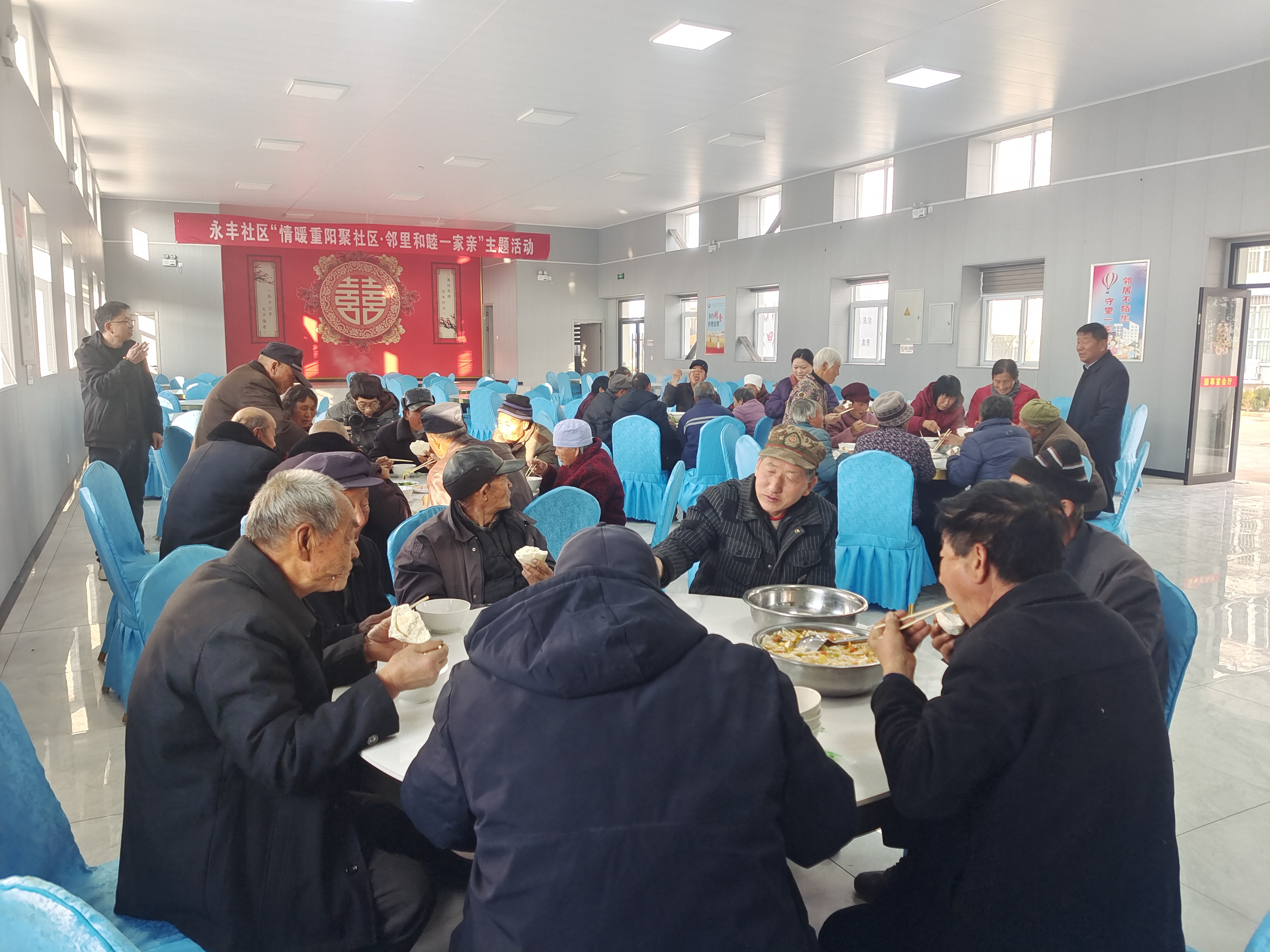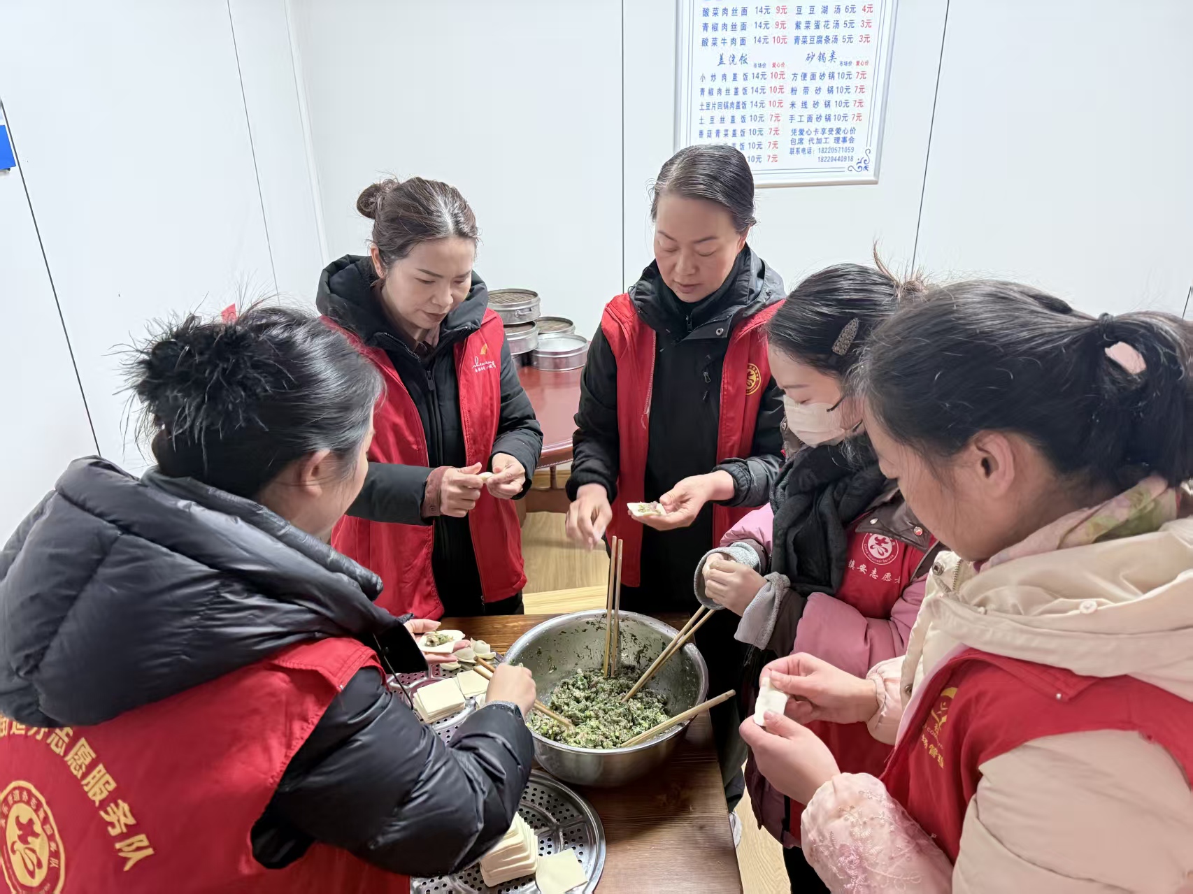 12月21日冬至当天上午,镇安县新城社区新时代文明实践站组织志愿者走进滨河佳园小区爱心餐厅,开展“情暖冬至,爱老敬老”文明实践活动,为辖区60岁以上老人包饺子、送爱心,让传统佳节浸润新时代文明新风。