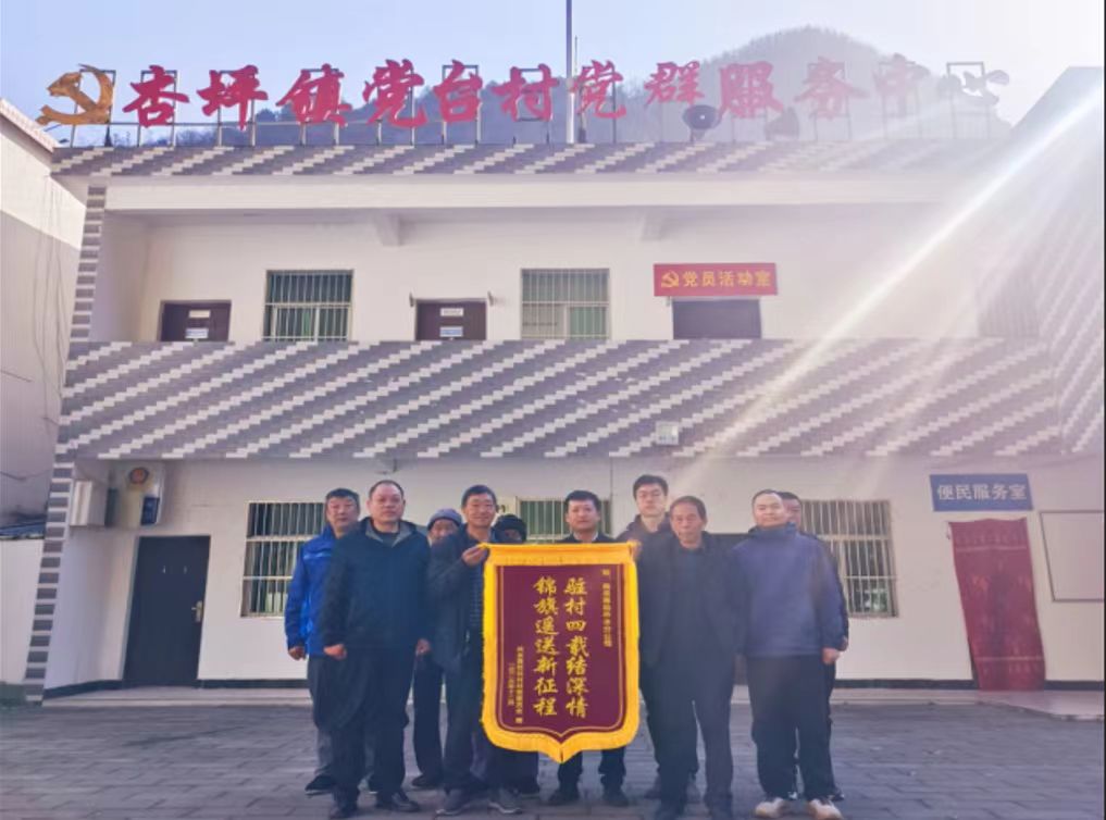 冬意正浓,暖流涌动。近日,柞水县杏坪镇党台村党支部书记及村民代表一行将一面绣着“驻村四载结深情 锦旗遥送新征程”的锦旗,郑重交到了柞水移动党支部书记何庆玉手中。
