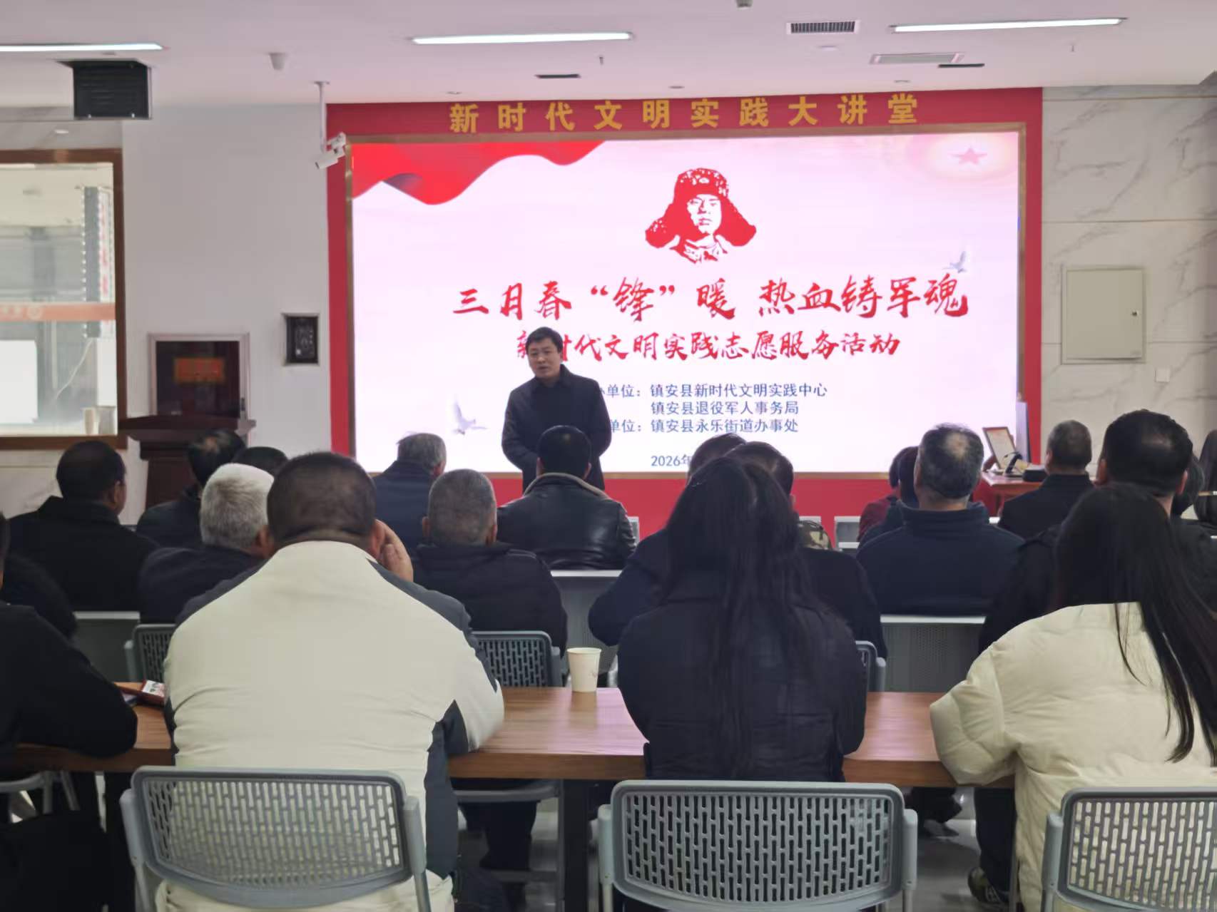 近日,镇安县新时代文明实践中心联合县退役军人事务局、永乐街道办事处,在新时代文明实践大讲堂开展“三月春‘锋’暖 热血铸军魂”主题文明实践志愿服务活动。