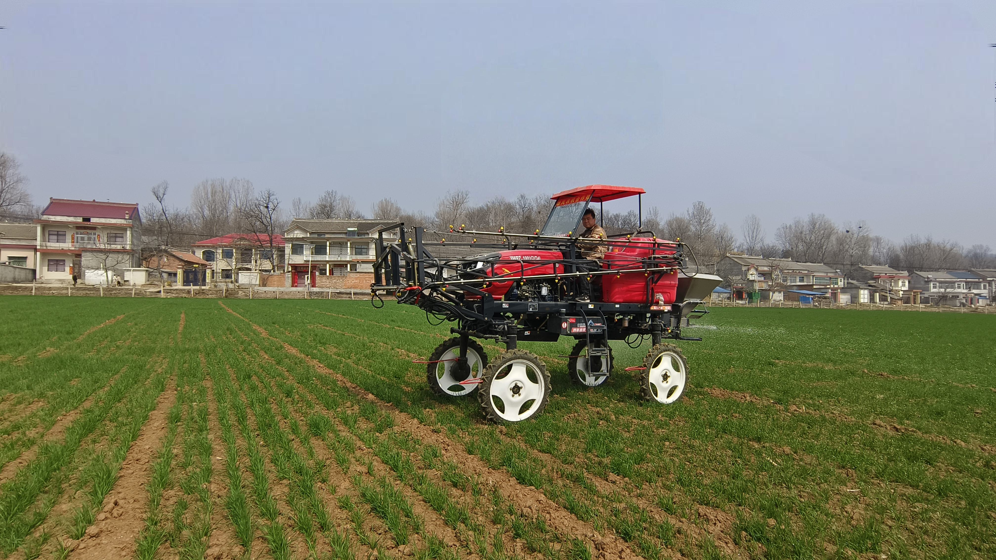 装肥料、起飞、喷洒……3月17日,雨过天晴,在陕西商洛洛南县古城镇何村,洛南县雄风农机专业合作社承包地里一派忙碌,一台自走式喷杆喷雾机在田间来回穿梭,将肥料均匀撒向田间,作业宽幅达10米左右,令在场所有人啧啧称奇。
