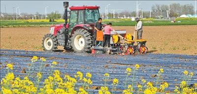 4月5日,安徽省亳州市蒙城县漆园街道,农民在播种毛豆。近日春暖花开,各地农民抢抓农时开展春播。