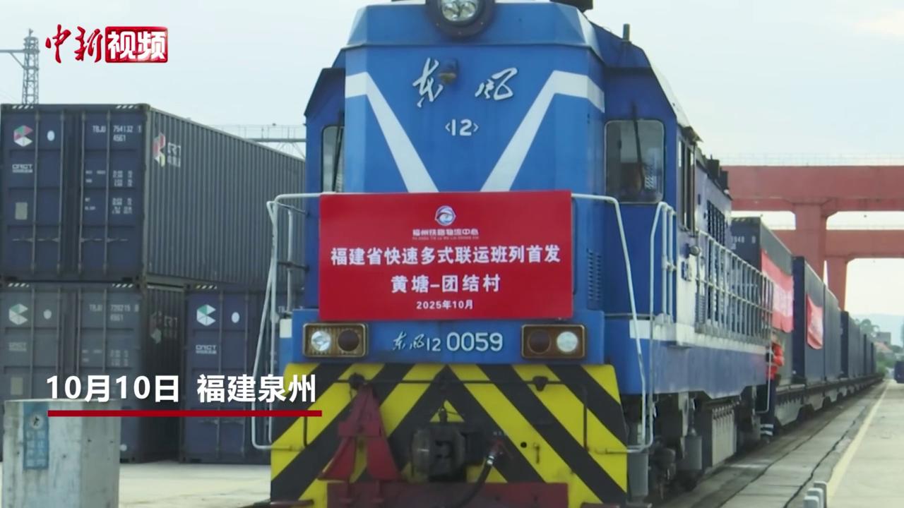 10月10日,一列装载25个集装箱轻工产品的X8666次快速多式联运班列从福建泉州黄塘铁路货场驶出,以最高120公里时速开往重庆团结村站,标志着福建省首列快速多式联运班列正式开行。