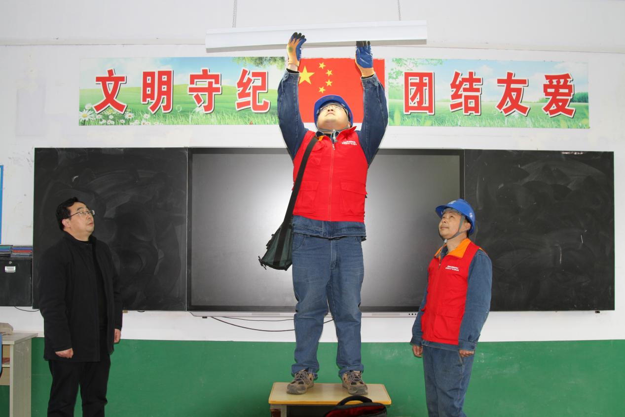 3月1日,新学期开学首日,陕西省西乡县柳树镇隆基中学校园内,国网西乡县供电公司共产党员服务队队员乔锦荣、付凡跟随杨校长对校园用电设施展开了一场“地毯式”体检。