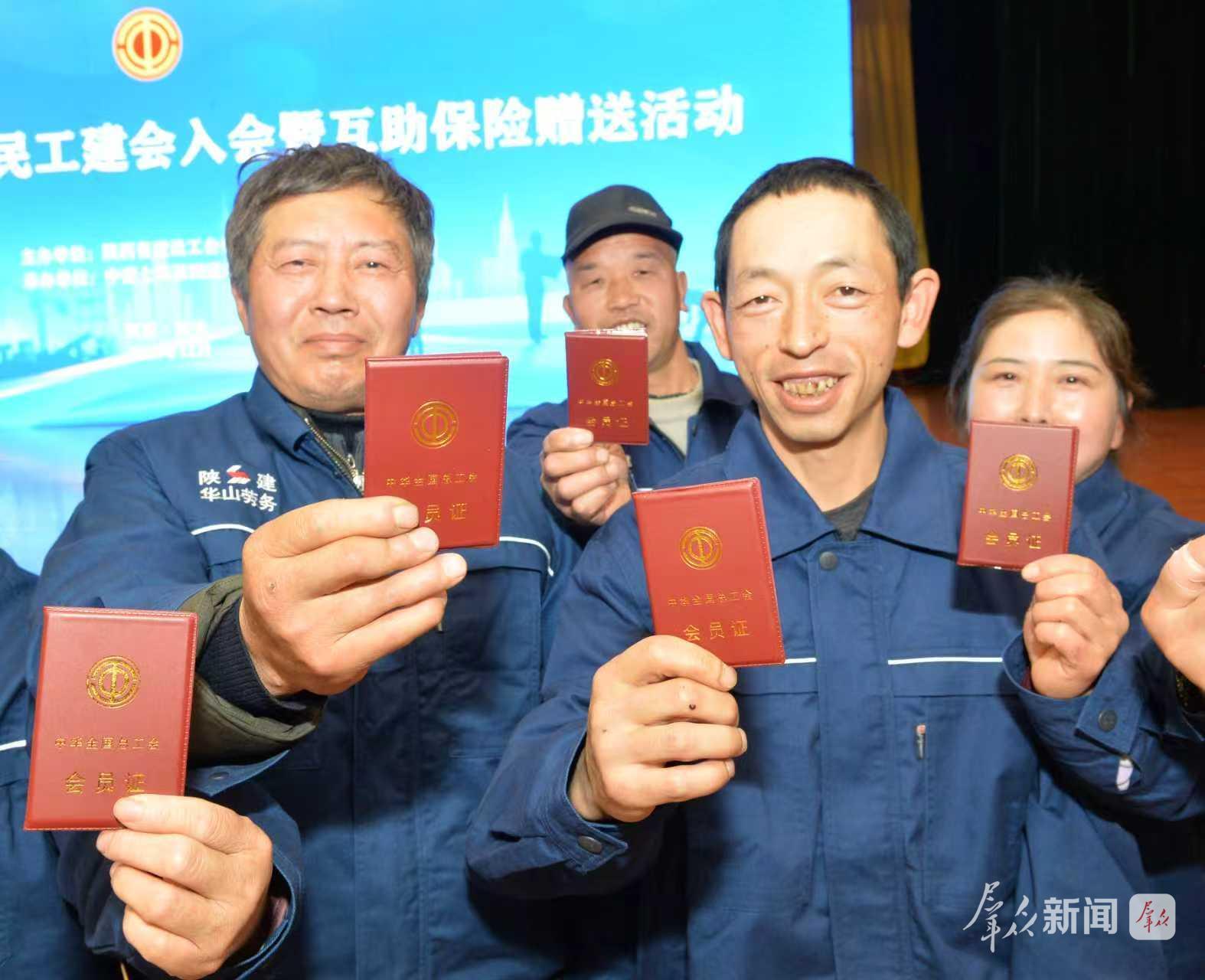 12月25日,陕西省建设产业工会农民工工作会议召开,会上举行了陕西省建设行业农民工建会入会暨互助保险赠送活动,120名来自建设一线的农民工代表现场加入工会并领取会员证与互助保险单。