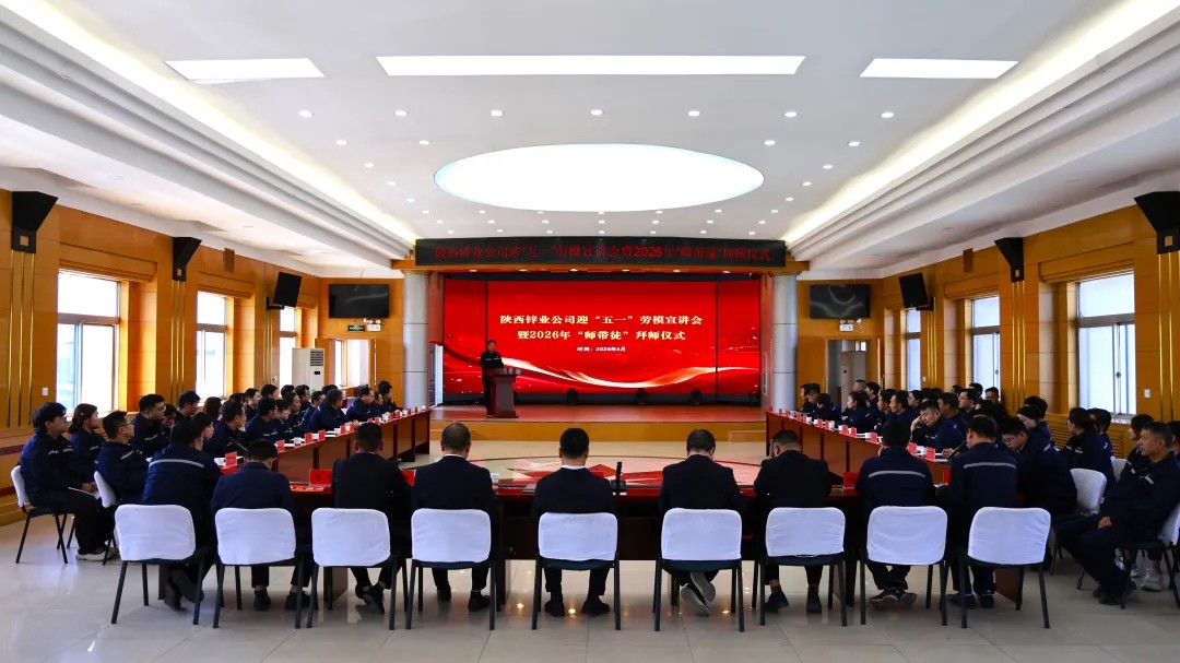 为弘扬劳模精神、传承工匠精神,在“五一”国际劳动节来临之际。近日,陕西锌业有限公司以“匠心逐梦・薪火相传”为主题,在办公楼四楼多功能厅举办迎“五一”劳模宣讲会暨2026年“师带徒”拜师仪式。