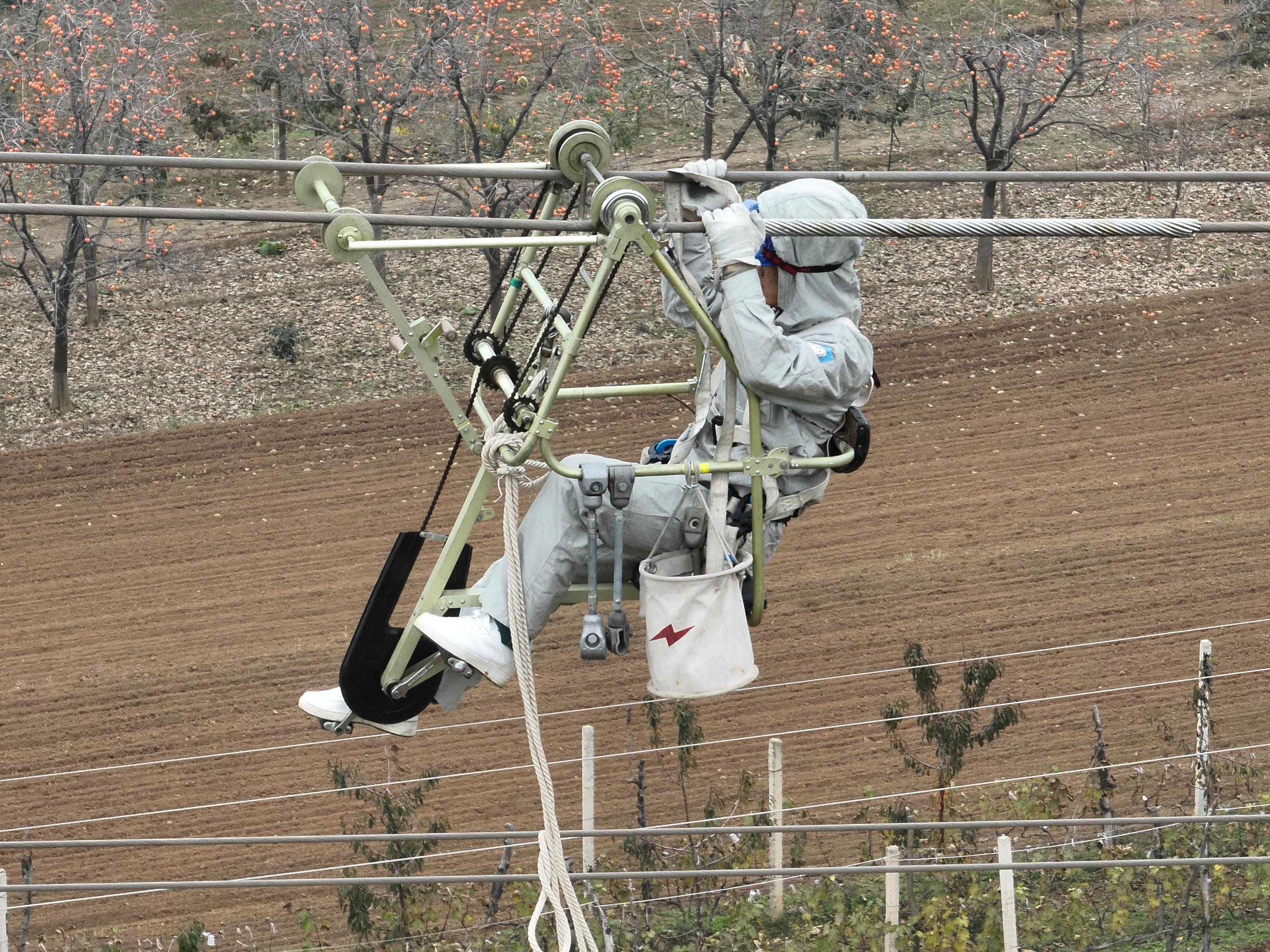 11月6日,国网铜川供电公司带电作业小组化身高空“蜘蛛侠”,在330千伏聂桃Ⅱ线169 至170号塔档间开展等电位作业,成功完成2处断股导线修补和4处间隔棒校正任务,以“不停电作业”模式为三秦大地迎峰度冬筑牢电网安全屏障。