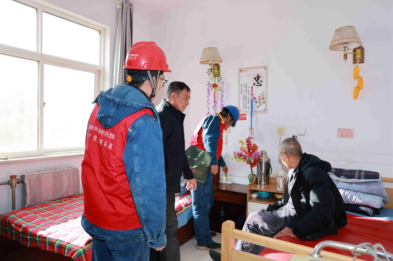 1月13日中午,在铜川市耀州区中心敬老院,老人们有的刚吃过饭在院子里晒太阳,空气中仍然飘散着饭香味。看到身穿红马甲的国网铜川供电公司小邱供电所工作人员进来,老人们热情地与他们打招呼。